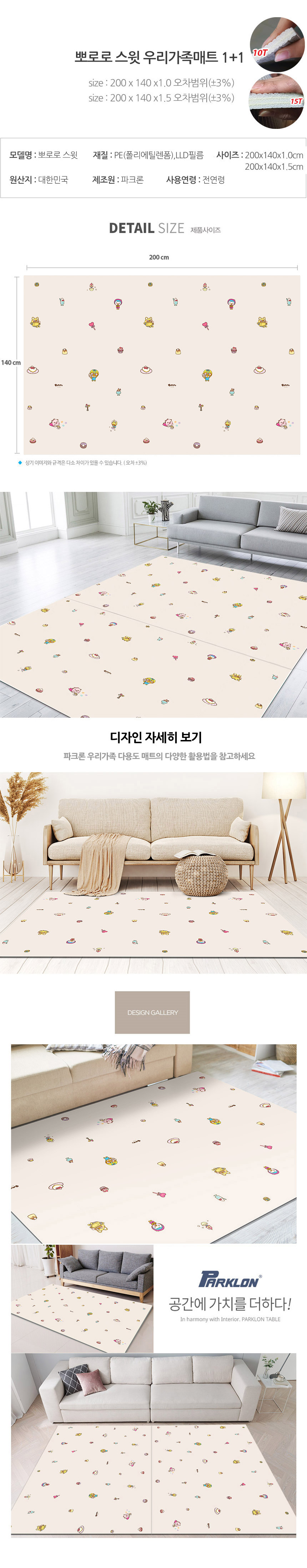 | 모델명 | 1+1 뽀로로 스윗 우리가족 놀이방매트 200x140x1.0cm |