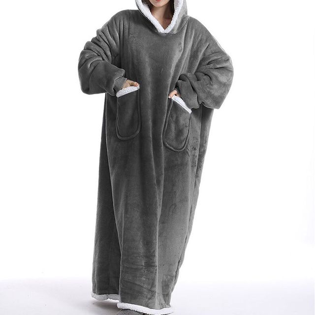 극세사 양털 안감 여성 오버핏 롱 후드 원피스 잠옷
