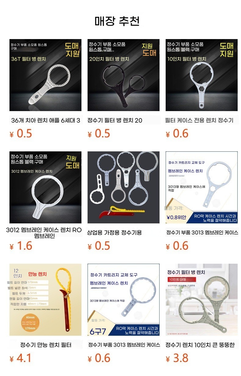 정수기 필터 병 렌치 20 인치 전면 필터 쉘 특수 렌치