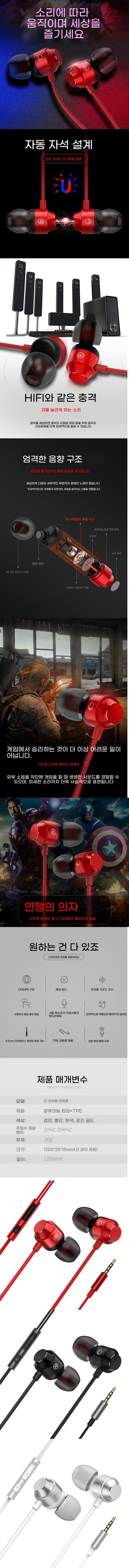 새로운 금속 자기 흡입 중저음 이어폰 이어폰 와이어