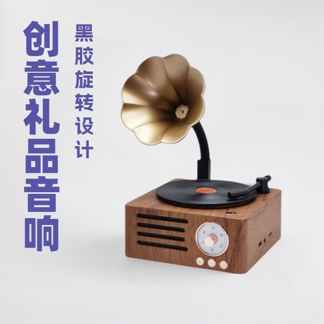 무선 블루투스 스피커 미니 레트로 축음기 회전 나무