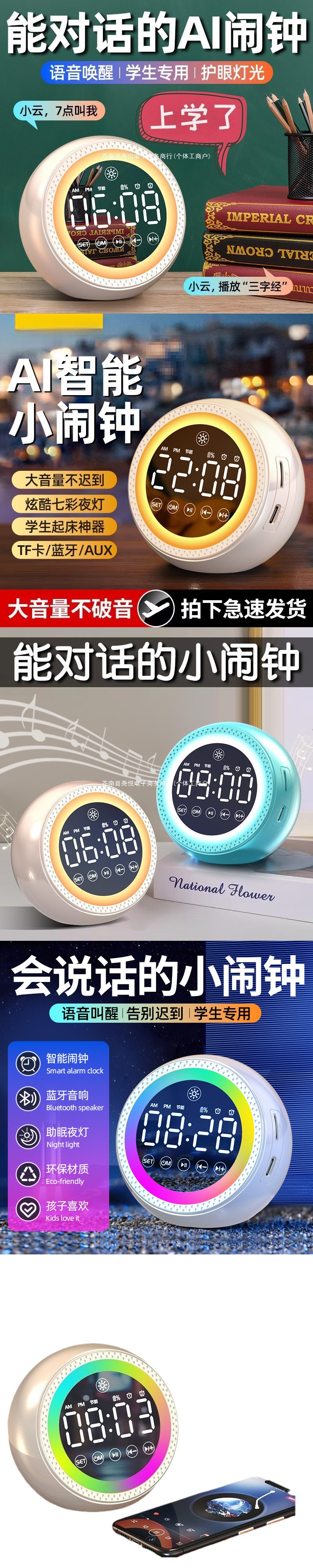 무선 블루투스 스피커 스마트 알람 시계 다기능 서브