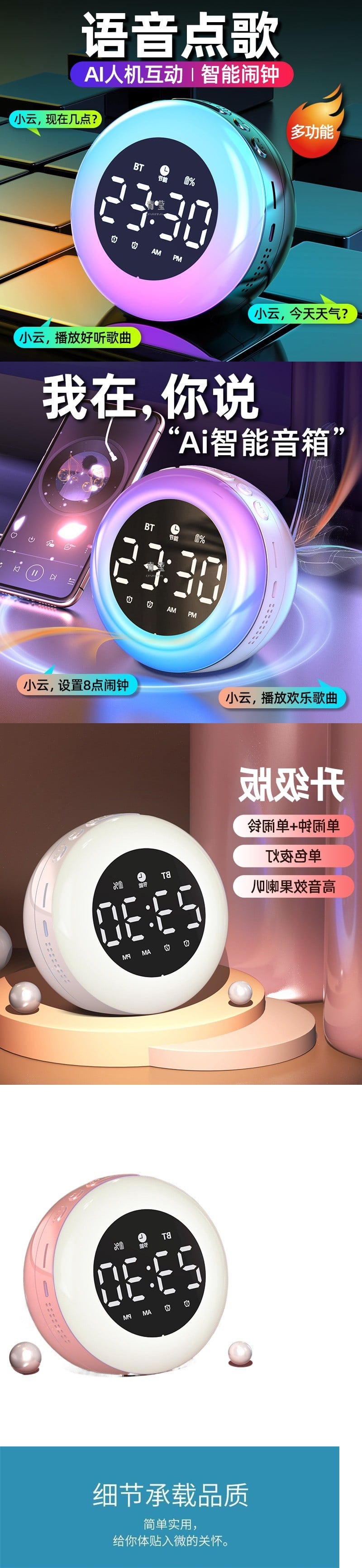 무선 블루투스 스피커 스마트 알람 시계 침대 음소거